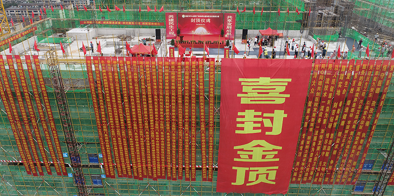 大樓的封頂標志著項目建設(shè)邁上新臺階,也為喜迎黨的二十大勝利召開獻上了一份特殊的禮物。