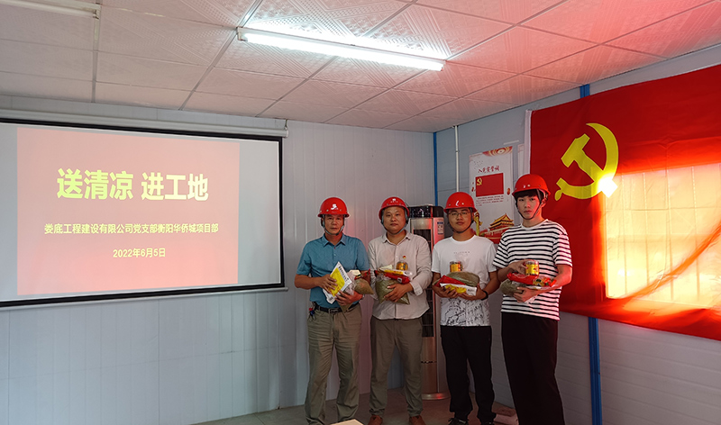 炎炎夏日,揮汗如雨。為保障員工的身體健康,確保全體員工全身心投入到安全生產(chǎn)工作中,6月5日,公司黨支部到衡陽(yáng)華僑城項(xiàng)目部開(kāi)展了“送清涼 進(jìn)工地”慰問(wèn)活動(dòng)。